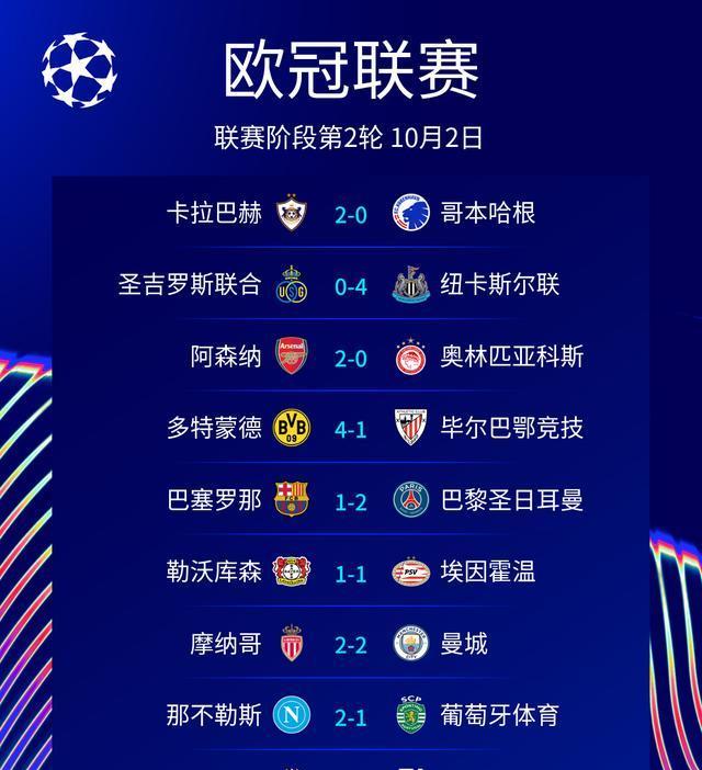 欧冠第2轮凌晨战场彻底沸腾!纽卡斯尔4球横扫拿下队史欧冠首胜,火力凶猛到窒息;曼城2-2遭摩纳哥绝平,哈兰德双响破纪录仍难救主;巴萨主场1-2被巴黎绝杀,20亿欧对决补时掀翻悬念;阿森纳2-0锁定胜局,补时破门杀死比赛。四场大战11个关键事件,从碾压狂欢到生死反转,欧冠格局彻底洗牌。